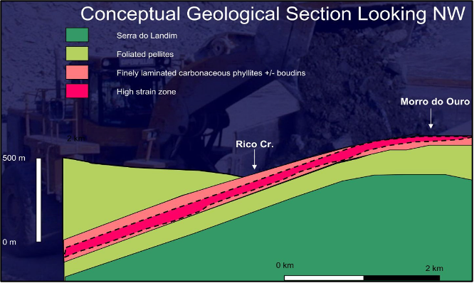 Extensive thrust fault development is present at Paracatu.